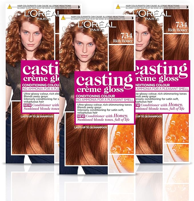 L Oreal Paris Casting Creme Gloss Brown Semi Permanent Hair Dye Blends Away Grey Hair Leaving A Radiant Hair Colour 734 Rich Honey Blonde Pack Of 3 Amazon Co Uk Beauty