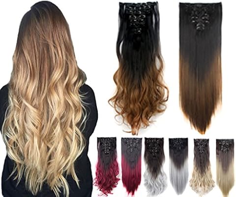 Amazon Com 8 Pcs 24 26 Two Tone Straight Full Head Ombre Dip Dyed Loose Curls Wavy Curly Clip In Hair Extensions 5 Colors Beauty