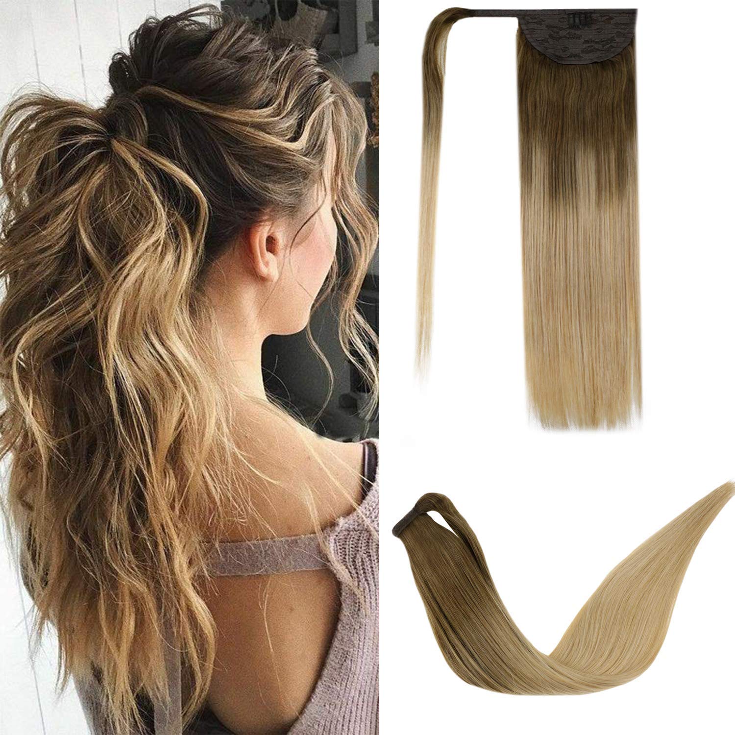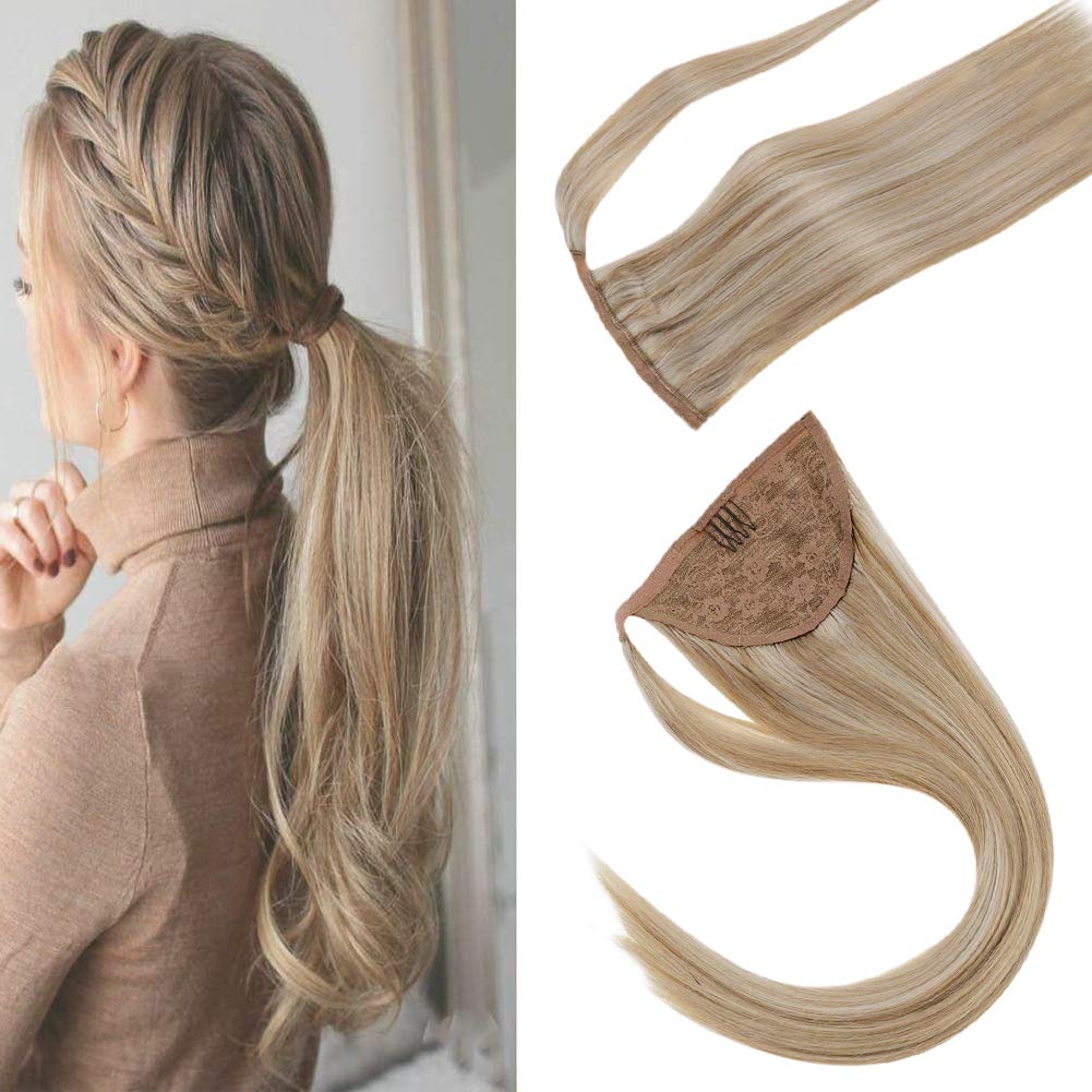 Amazon Com Laavoo 20 Virgin Remy Straight Pony Tail Thick Ponytail Real Human Hair Wrap Around For Short Hair Balayage Ombre Color Ash Brown To Dark Golden Blonde 100g Beauty