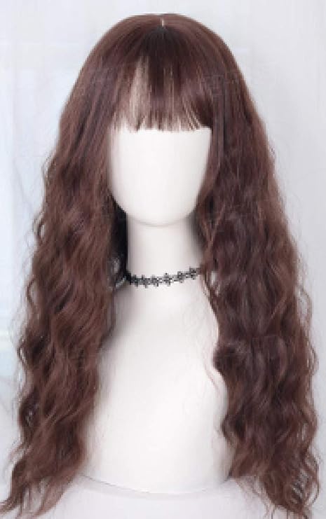 Medusaabczeus Short Hair Full Headgear Female Wig With Long Hair Air Bangs With Long Curly Hair Big Wave Natural Hair Cover Chocolate Color Women S Natural Beautiful Appearance Wig Amazon Co Uk Kitchen Home