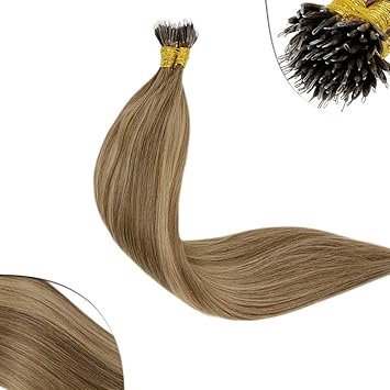 Amazon Com Laavoo 16 Inch Nano Rings Remy Fusion Human Hair Extensions For Short Hair Balayage Ombre Color Light Brown To Golden Blonde And Brown Keratin Bonds Nano Tips 50g 50s Beauty